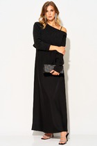 Костюм женский, состоящий из жакета и брюк. Жакет без подкладки, кроя «летучая мышь», с центральной однобортной застежкой на петли и пуговицы. По переду обработаны вертикальные прорезные карманы с листочкой. Спинка цельнокроеная, слева расположен декор в виде авторской броши. Горловина V-образной формы, обработана воротником пиджачного типа. Рукав 7/8, по низу обработан широкой притачной манжетой. Брюки женские, расширенные. По переду обработана застежка на молнию, обработаны карманы с наклонным входом. На задних половинках брюк застрочены вытачки. Верх обработан широким притачным поясом (частично на резинке), застегивающимся на петлю и пуговицу.
