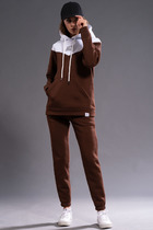 Костюм утепленный на флисе. Худи с рукавом реглан с капюшоном на подкладке из основной ткани, элементы обработки кантом. Брюки модели 4053 средней посадки зауженные к низу с  карманами в боковых швах. Обработка низа брюк  резинка. Ткань футер (3-х ниточный) с внутренним слоем утепленным начесом, качество Пенье, плотность 380 г.м2