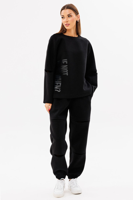 Представляем вам уникальный спортивный костюм, который сочетает в себе стиль и комфорт. Брюки свободного силуэта с разрезами по передней детали создают динамичный и современный образ, обеспечивая при этом максимальную свободу движений. Свитшот свободного силуэта с разрезами на рукавах добавляет оригинальности и позволяет вам выделиться из толпы.