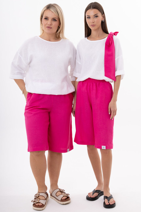 Женский костюм из льна с вискозой премиум-класса. Комплект: джемпер со съемным бантом в комплекте и шорты.