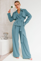 Костюм женский состоит из джемпера и брюк. Джемпер на молнии свободного покроя. Брюки с карманами, низ с манжетами.