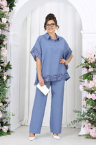 Комбинированный брючный премиум комплект в стиле спорт шик для внесезонной носки. Удлиненная куртка-ветровка без подкладки, по талии с кулисой, свободного силуэта на молнии, с накладными карманами, воротник - высокая отложная стойка, по рукаву контрастная отделка и регулируемый хлястик . Спинка с кокеткой. Брюки средней посадки, заужены к низу с декоративными лампасами , без застежки , на круговой резинке по талии, с карманами в боковых швах.