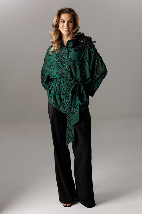 Блуза дополнена съемным поясом для подчеркивания силуэта комплекта.