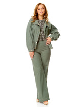 Классические женские брюки в комплекте, со средней посадкой, прямого покроя от бедра. Застежка – брючная тесьма-молния с обработанным гульфиком.  Карманы боковые. Пояс притачной, в боковых участках вставлена резинка на свободу.  По переду заутюжены канты.  Спинка с Талиевыми выточками. Подгибка брюк –– 4 см.