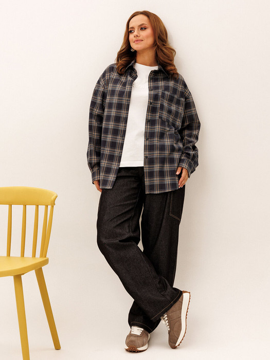 Рубашка прямого силуэта со спущенной линией плеча. Центральная застежка на петли и пуговицы. Воротник с отрезной стойкой. На левой полочке переда накладной карман. Рукав одно шовный с притачной манжетой. По шву притачивания манжеты рукав закладывается в две складки. Застежка рукава на одну петлю и пуговицу Низ рубашки фигурный.