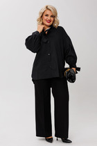 Жакет с центральной застёжкой на петли и пуговицы, отрезной баской и стояче-отложным воротником. Баска со складками по переду и спинке. Спинка со средним швом и двумя рельефами. Рукава цельнокроеные с изделием по переду и втачные по спинке. Жакет на подкладке. Изделие с брошью в верхней части (брошь входит в комплект).