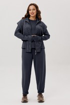 Комплект 2-ка, состоящий из рубашка и брюк. Рубашка женская большого объема, прямого силуэта. На детали спинки расположена двойная кокетка, переходящая на деталь полочки. Под кокеткой на спинке встречная складка. Воротник рубашечный отложной на стойке. Застежка планка центральная на прорезные петли и пуговицы. Линия плеча спущенная, рукав рубашечный, длинный. В нижней части рукава заложены складки, заканчивается манжетой с двумя прорезными петлями и пуговицами. Низ блузки разноуровневый: спереди короче, сзади длиннее. Широкие брюки-кюлоты свободного оригинального кроя с застёжкой на пуговицы. Без карманов.