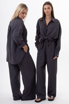 Костюм 2ка, состоящий из жилета и юбки. Объёмный жилет из стёганой ткани на подкладке с центральной застёжкой на кнопки. По переду жилета имитация нагрудного кармана с молнией, а по бокам полочки расположены функциональные карманы. По горловине и низу жилета детали из отделочной трикотажной ткани. Низ жилета на резинке. Юбка-карандаш длиной ниже колена с шлицей по переду. Застёжка на молнию с кнопкой. На пояс юбки настрочены шлевки. Рост фотомодели 175 см. Размер у фотомодели – 44. Длина юбки в 44 размере 83 см, длина жилета по спинке 68 см.