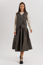 Состав: Жилет- ПЭ-100%; Платье- Вискоза-45%; ПЭ-35%; Хлопок-20%;
