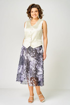 Универсальный и удобный женский брючный комплект. Данный комплект может быть как нарядным, так и для повседневной носки. Изделие состоит из футболки и джинсовых брюк-палаццо. Футболка свободного кроя выполнена из хлопковой ткани. Рукав укороченный, круглая горловина, перед и спинка прямые. По переду изделие украшено аппликацией. Брюки-палаццо из однотонного джинса средней плотности. Брюки идеально сидят на любой фигуре, подчеркивая все достоинства и скрывая недостатки. Изделие на притачном поясе с резинкой сзади, сбоку застежка на молнию. По низу брюк цельнокроеная манжета из широкой подгибки. С данным комплектом можно смело создавать стильные образы как вместе, так и по отдельности. Длина футболки по спинке 64 см, длина рукава 28 см. Длина брюк по боковому шву 108 см, по шаговому 79 см. Изделие подойдет на рост 170 см.