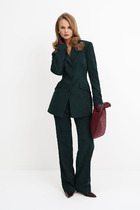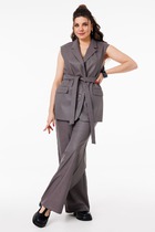 В мире моды всегда есть место для универсального и стильного наряда, и этот женский костюм больших размеров станет настоящей находкой для каждой женщины. Данный женский комплект подходит как для повседневной носки и работы, так и для торжественных событий. Костюм выполнен из материала средней плотности, что гарантирует комфорт и долговечность. Жакет женский имеет удлинённый силуэт с ассиметричным низом, распашной конструкцией и застежкой на петли-пуговицы. Спинка с центральным швом, а рукав втачной одношовный, что делает изделие практичным. Изюминкой этого жакета больших размеров становится настрочный карман-книжка, а также съемный пояс на застежке-карабине, который гармонично подчеркивает талию. Брюки женские с широкими штанинами (палаццо) обладают стильными карманами в боковых швах и притачным поясом на резинке, что добавляет комфорта в повседневной носке. Этот костюм легко комбинируется с различными топами и джемперами, позволяя создать уникальный и стильный образ для любого случая. Не упустите возможность добавить этот универсальный костюм в свой гардероб – он станет вашим верным спутником и в повседневной жизни, и на праздниках! Длина жакета повседневного составляет 79 см, а длина рукава от плечевого шва – 50 см. Длина брюк больших размеров по боковому шву – 113 см, что делает его удобным для роста до 170 см.