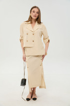 Женский комплект, состоит из бомбера и брюк, свободного покроя, выполнен из трикотажного полотна с эффектом «штрукс». Бомбер свободного покроя, с застежкой по переду на кнопки, горловина V-образной формы, отделана довязом контрастного цвета. Также на полочке обработаны прорезные карманы с листочкой, по низу бомбера втачен довяз контрастного цвета. Рукав втачной, длинный, из основной ткани, по низу на манжете. Брюки прямого покроя, на притачном поясе, выполнены из трикотажного полотна с эффектом «штрукс». Застежка по переду на молнию, также по переду брюк обработаны карманы в боковых швах, на заднем полотнище брюк обработана кокетка. Стильный и удобный комплект в спортивном стиле то, что нужно на каждый день!