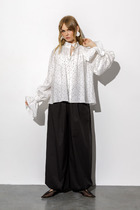 Блузка: Ширина груди- 116см, Ширина талии -92см на резинке, Ширина бедер- 120см, длина рукава- 38см, ширина рукава 46см.