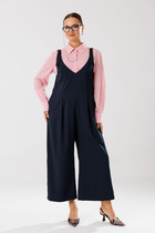 Костюм двухпредметный: состоит из джемпера и юбки. Уютный джемпер с округлой горловиной. Защипы на рукаве-реглане делают образ максимально женственным и элегантным. На рукавах есть съёмные авторские украшения в виде цветка из основной ткани. Юбка - солнце макси с узким поясом. В боковых швах расположены карманы. Застёжка на петлю и пуговицу и молнию по спинке.