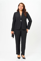 Костюм двухпредметный: состоит из джемпера и юбки. Джемпер-кейп прямого свободного силуэта. Горловина с цельнокроеным воротником-стойкой. Рукав втачной широкий, от линии локтя до запястья есть дополнительное отверстие для рук. Декорирован цветком из контрастной ткани. Юбка - солнце с узким поясом. В боковых швах расположены карманы. Застёжка на петлю и пуговицу и молнию по спинке.