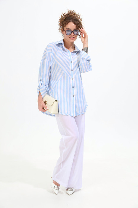Совместные покупки Омск Женская одежда Костюмы, комплекты — Костюм NIKVA н961-1 молоко+бело-голубые полосы