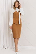 Представляем вашему вниманию вечерний женский костюм от NINELE - истинное воплощение изящества.  Этот наряд собрал в себе лучшие модные свадебные тенденции: сочетание костюмной ткани с изысканным кружевом придает образу особую изысканность и стиль. Костюм идеально подойдет для свадебного торжества, вечернего мероприятия или другого особого случая, где вы захотите выглядеть неповторимо и элегантно. Особенностью данного костюма является кружевной кардиган, выполненный из кружева и основной ткани. Такой дизайн элегантно формирует правильный силуэт фигуры, подчеркивая ее достоинства.