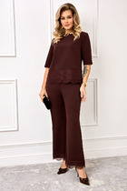 Представляем вашему вниманию вечерний женский костюм от NINELE - истинное воплощение изящества. Этот наряд собрал в себе лучшие модные свадебные тенденции: сочетание костюмной ткани с изысканным кружевом придает образу особую изысканность и стиль. Костюм идеально подойдет для свадебного торжества, вечернего мероприятия или другого особого случая, где вы захотите выглядеть неповторимо и элегантно. Особенностью данного костюма является кружевной кардиган, выполненный из кружева и основной ткани. Такой дизайн элегантно формирует правильный силуэт фигуры, подчеркивая ее достоинства.