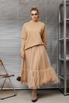Брюки классические длинные, прямого силуэта, с посадкой на талии, выполнены из трикотажного полотна «велюр». Модель с центральной застёжкой на тесьму-«молнию», на притачном поясе, застегивающемся на петлю и пуговицу. Передние и задние половинки брюк с талиевыми вытачками, направленными от пояса вниз. Спереди обработаны боковые наклонные карманы. Для лучшего прилегания брюк в области талии в поясе по задним половинкам вставлена эластичная лента. Длина брюк по боковому (с поясом)-107 см (52-54 р-р), 108 см (56-60 р-р).