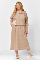 Брюки длинные, с посадкой на талии, выполнены из трикотажного полотна с фактурной лицевой стороной «люрекс». Модель без стрелок, без застежки. Спереди обработаны наклонные боковые карманы. Для лучшего прилегания по линии талии в притачном поясе предусмотрена широкая эластичная лента, вставленная по всей длине. Длина брюк по боковому (с поясом) –107 см (50-52 р-р), 108 см (54-58 р-р).