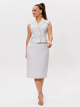 Комплект брючный, трех предметный, состоящий из жакета и брюк, выполненные из костюмной ткани и джемпера, выполненного из трикотажного полотна.