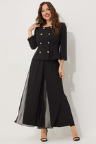 Этот костюм станет безупречным решением как для деловых встреч и офисных будней, так и для торжественных мероприятий и праздничных выходов. Акцентом модели служит асимметричная спинка со шлицей на декоративных пуговицах, которая придает образу строгость и изысканность. Костюм станет надежной основой стильного гардероба современной женщины — он легко адаптируется под разные случаи, сохраняя ощущение уверенности и элегантности в любом образе.
