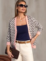 Жакет однобортный, прямого силуэта, выполнен из поливискозного трикотажного полотна. Модель на притачном поясе, без подкладки, с плечевыми накладками. Перед с центральной внешней застежкой на 6 петель и 6 декоративных пуговиц; в верхней части переда обработаны нагрудные вытачки, направленные от пройм, в нижней части настрочены накладные карманы с клапаном. Горловина круглой формы, углубленная спереди. Рукав длинный, втачной, на притачной манжете без застежки. Длина жакета –