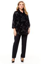 Стильный двух предметный костюм для женщин из костюмной ткани «гальяно» - это идеальное сочетание комфорта и элегантности. Такой костюм подходит как для офисного делового образа, так и для повседневного ношения. Жакет костюма выполнен в классическом стиле на пуговицах, без воротника с накладными карманами. Рукав длинный на манжете с патой на петлю и пуговицу. По боковым швам обработаны разрезы. Брюки костюма имеют прямой крой в стиле палаццо, что позволяет создать строгий и элегантный образ. Карманы на брюках расположены по бокам, что добавляет практичности и функциональности. Пояс брюк на резинке. Этот костюм не только обеспечит вам ощущение комфорта в любой ситуации, но также придаст изящности и женственности вашему образу. Если к костюму добавить из Вашего гардероба белую нарядную блузу- получится нарядный комплект.