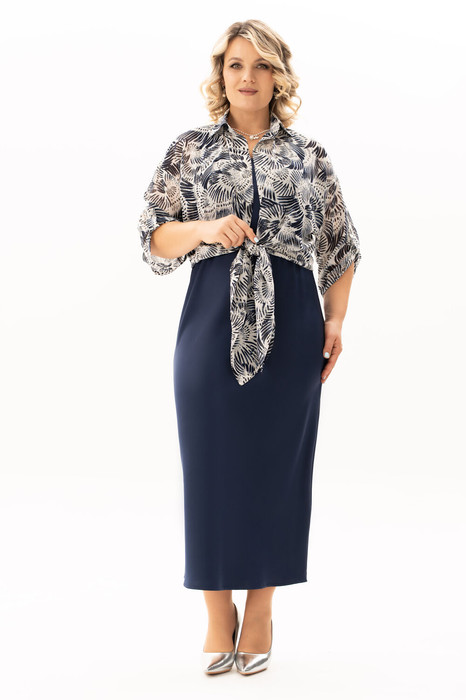 Нарядный двухпредметный комлект, состоящий из рубашки и платья. Рубашка в стиле casual выполнена из принтованной ткани с крэш-эффектом и мелким леопардовым узором — оригинальное сочетание естественной динамики и актуального принта. Модель без застёжек, с воротником на стойке и удлинёнными концами полочек, которые можно элегантно завязать на талии. Рукава длиной 3/4 собраны на паты с декоративной пуговицей, создавая расслабленный и волнующий образ. Второй элемент комплекта — платье из струящегося атласа, кроенное по косой, что обеспечивает красивую посадку и мягкое облегание по фигуре. Углубленная горловина добавляет лёгкой чувственности, а нагрудные вытачки от проймы подчёркивают линию груди. Этот комплект легко адаптируется под разный стиль: носите рубашку отдельно с джинсами, а платье дополните сандалиями и украшениями, подходящими для романтичных прогулок или встреч в городе.