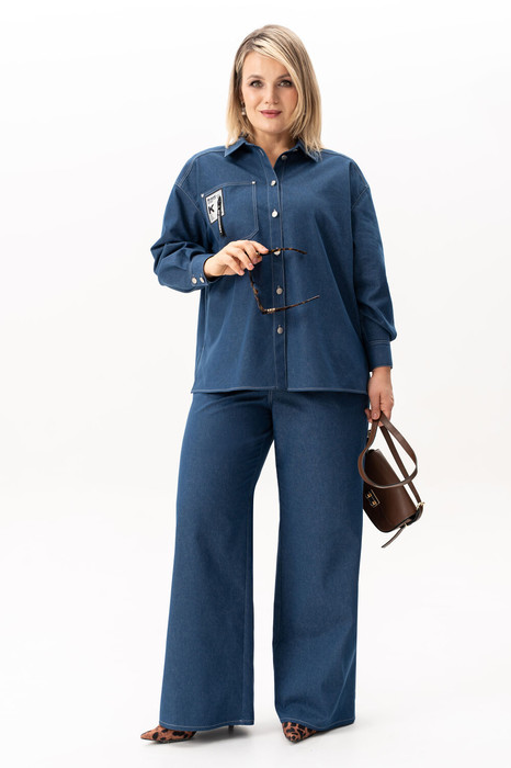 Джинсовый женский костюм двойка состоит из брюк прямого кроя и рубашки на пуговицах, что делает его универсальным выбором. Этот стильный брючный костюм создан из хлопка, что делает его комфортным и приятным к телу. Подходит для различных сезонов — весной и летом  он станет незаменимым элементом гардероба. Модель с джинсами выполнена в духе классики, но при этом остается актуальной и трендовой. Возможность носить элементы раздельно — важное преимущество. Джинсы с завышенной талией станут любимым элементом гардероба как на каждый день, так и на праздничное мероприятие. А рубашку из денима можно сочетать как с женственными образами, так и с кежуал стилем. Женская одежда должна быть не только удобной, но и стильной. Благодаря качественным материалам изделие сохраняет свой вид даже  после многократных стирок. Это идеальный выбор для девушек, кто ценит универсальность икомфорт.