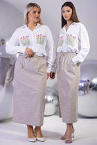 Состав: Костюм- Вискоза-45%; Лён-55%; Блуза- Вискоза-100%;