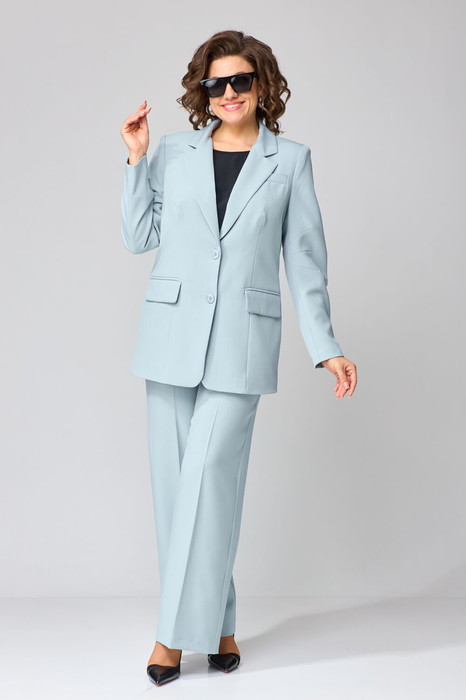 Комплект женский, состоящий из жакета и брюк, выполнен из однотонной костюмно-плательной ткани.