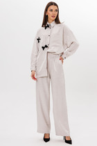 Состав: Блуза- Вискоза-78%; ПЭ-18%; Эластан-4%; Брюки- Вискоза-33%; ПЭ-64%; ПУ-3%;