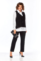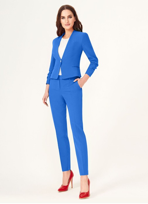Стильный лаконичный брючный костюм. Жакет с застежкой на одну пуговицу. Жакет полуприлегающего силуэта, с V-образным вырезом горловины. По переду и по спинки имеются вытачки и рельефы, которые обеспечивают отличную посадку изделия по фигуре. Рукава втачные, длиной 3/4. Брюки классические на поясе, укороченые, с карманами по переду. Отличный вариант как для деловых встреч, так и для торжественных мероприятий.
