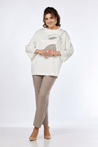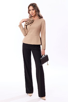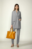 Длина жакета по спинке около 72 см в размерах 40-46 и около 74 см в размерах 48-52, длина рукавов около 62,5 см. Длина брюк по боковому шву с поясом около 99 см в размерах 40-46 и около 100,5 см в размерах 48-52, длина по внутреннему шву около 69,5 см.