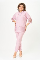 Длина жакета по спинке около 48 см в размерах 40-46 и около 51 см в размерах 48-52, длина рукава около 65 см. Длина брюк по боковому шву с поясом около 109,5 см, длина по внутреннему шву около 83 см