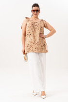 Длина жакета по спинке около 71 см в размерах 40-46 и около 72 см в размерах 48-52, длина рукавов около 62 см. Длина юбки по боковому шву с поясом около 46 см в размерах 40-46 и около 49 см в размерах 48-52 см