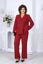 Детали: жакет прямого силуэта, расширенная линия плеч, пиджачный воротник, перед с функциональными карманами, однобортная застежка на петли и пуговицы, спинка со средним швом и шлицей, рукава втачные двухшовные, жакет на подкладке. Юбка на притачном поясе, застежка сзади на потайную молнию, юбка на подкладке.