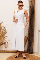Стильный 2-предметный комплект, состоящий из жакета и юбки-шорт. Комплект выполнен из качественной костюмной ткани.
