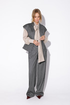 Жакет современного прямого силуэта однобортный, застёгивающийся на петли и пуговицы. Воротник пиджачного типа с отложными лацканами. Спереди в подрезе обработаны карманы с клапанами. Рукава втачные двухшовные. Спинка со средним швом. Изделие на подкладке.