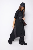 Стильный 2-предметный комплект, состоящий из жакета и юбки, выполненный из экокожи.
