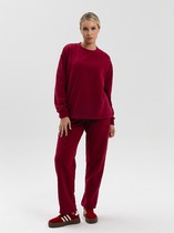 Выполнен из футера 3х-нитки с начесом. Толстовка с капюшоном (без подклада) и карманом-кенгуру, брюки на резинке с эластичными манжетами.