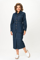 Комплект женский предназначен для повседневной носки. Комплект двухпредметный: жакет и платье. Жакет полуприлегающего силуэта, удлиненный, длиной ни же колена на 4 см. Перед с двумя нагрудными вытачками, с двумя отрезными бочками, в швах соединения бочков с передом обработаны карманы. Спинка со средним швом и двумя талиевыми вытачками. Горловина с V-образным вырезом с втачным воротником пиджачного типа с отложным лацканом. Застежка центральная бортовая на 6 пробивных металлических кнопок. Рукав втачной, двухшовный, длинный. жакет с плечевыми накладками, на подкладке. Платье женское полуприлегающего силуэта, длиной за колено. Перед с двумя нагрудными вытачками. Спинка цельнокроеная. Горловина круглая, с притачной планкой, с -образным разрезом. Рукав втачной, одношовный, длиной 3\4. Горловина декорируется пришивным украшением. Платье на подкладке с плечевыми накладками. Длина жакета 105 см. Длина рукава жакета 60 см. Длина платья 102 см. Длина рукава платья 44 см