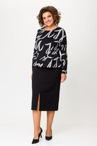 Юбка прямая с наклонными карманами и складкой по переду, с широким поясом-обтачкой. Застегиваются на молнию сзади.