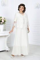 Брючный комплект из костюмной ткани на подкладке. Двубортный жакет полуприталенного силуэта с отрезными бочками и вытачками по переду и спинке. Воротник-с отложными лацканами пиджачного типа. По переду - прорезные карманы с клапанами. Рукава длинные, двухшовные. Жакет застегивается на две пуговицы. Жакет декорирован цветами-брошами ручной работы. Брюки прямые со складкой, широким поясом-обтачкой, наклонными карманами. Застегиваются на молнию по переду и пуговицу.