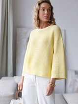 Укороченный джемпер с широкими рукавами рельефной вязки из хлопка с акрилом