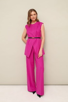 Жакет укороченный, прямого кроя без застежки, с втачным рукавом 3/4, что придает образу легкость и воздушность. Съемное украшение в виде цветка замечательное дополнение, для создания разнообразных образов.