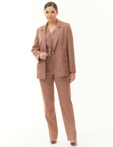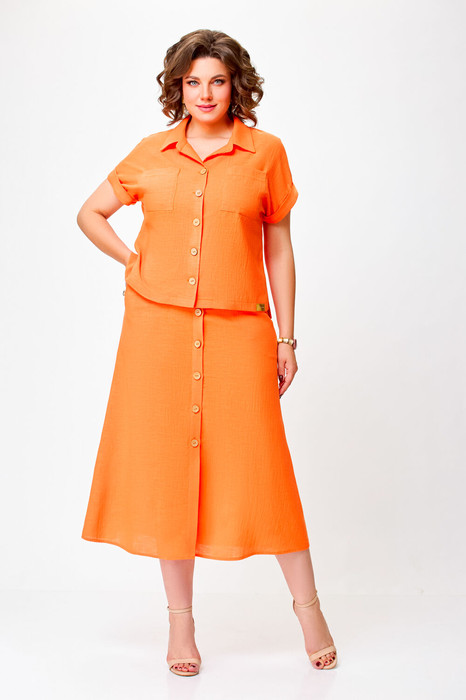 Костюм женский двухпредметный, состоит из блузы и юбки, выполнен из льняной ткани с вискозой.