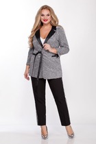 Универсальный трёхпредметный комплект, состоящий из жакета-ветровки, брюк, футболки. Каждый из предметов можно носить отдельно, составляя новые образы. Комфортная футболка со спущенным рукавом выполнена из мягкого вискозного трикотажа. На переде обработаны нагрудные вытачки, декором служит стильный дизайнерский принт.