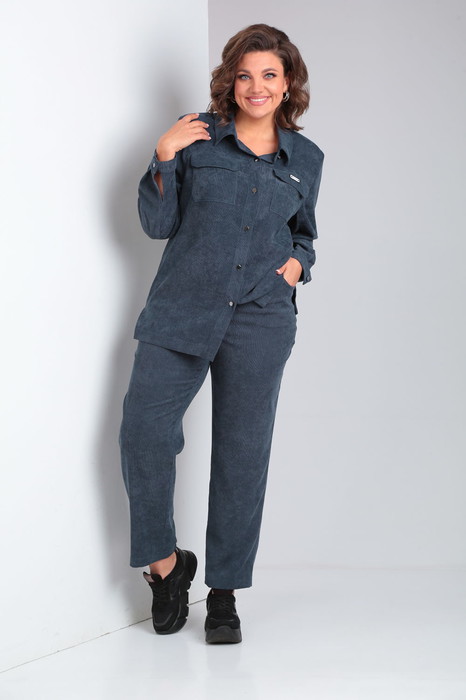Стильный женский комплект, состоящий из рубашки и брюк актуален , универсален и легко можно использовать отдельно друг от друга в различных образах. Модель выполнена из стрейчевого вельвета. Комплект свободно сидит по фигуре и не сковывает движений.